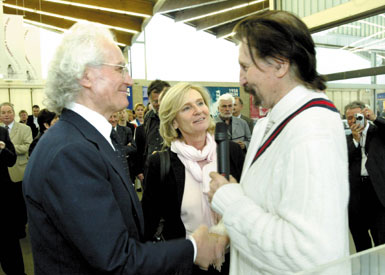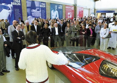 Colani explaining his work and talking to Marie-Laure Jousset and Luciano Benetton