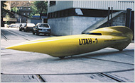 For a speed-record attempt, he designed the two-wheel Utah. "I love America," he said. "That is where you can really make cars of your own. I love to go to Bonneville and drive there like a madman."
